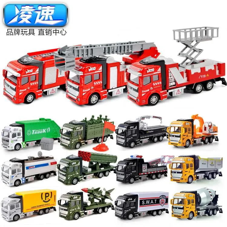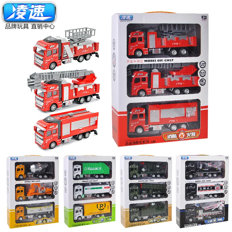 BEST QUALITY Lnsu Warrior Alloy Fire Truck Model Set CHILDREN'S Toy Aerial Ladder Truck Height Adjustable Wrecke