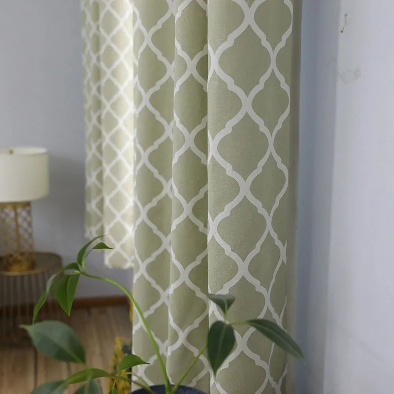 ORIGINAL Linen&Cotton Curtains Living Room Bedroom Kitchen Printed Green Half Blackout Window Short Curtains