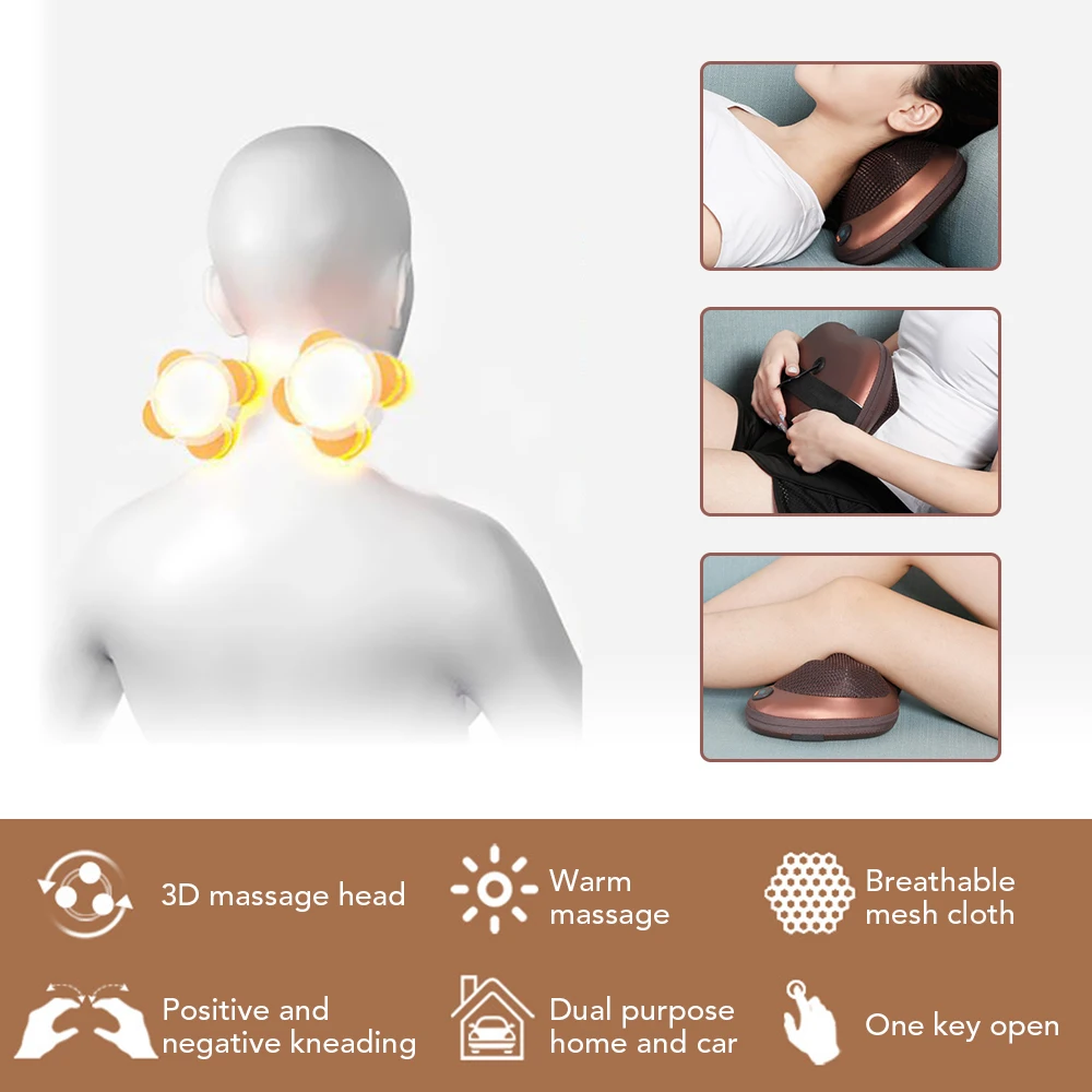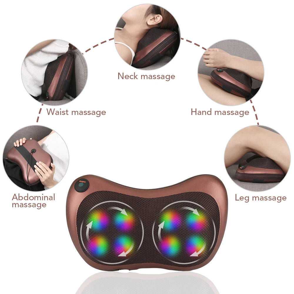 ORIGINAL Hot Compress Kneading Neck Massager Car Home Cervical Neck Massage Pillow Body Massager Electric Ne